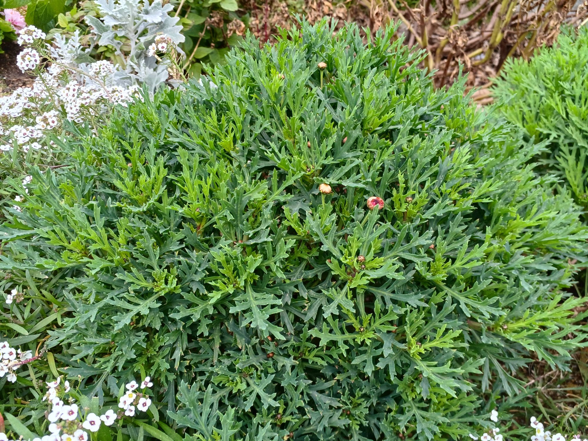 去年の秋ごろ、夏越しに成功したマーガレットの苗を、地植えに変更しました。